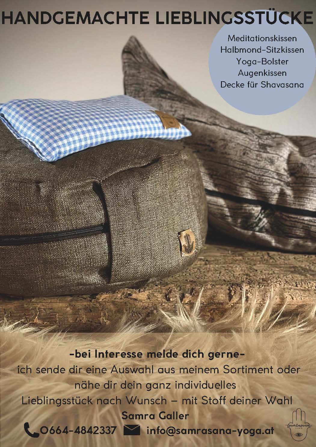 Beruflich bin ich als Buchhalterin und Personalverrechnerin tätig – Zahlen sind also mein tägliches Brot. Doch mein Herz schlägt auch für die kreative Seite des Lebens: In meiner Freizeit findest du mich oft draußen in der Natur – beim Skifahren, Skitourengehen, Wandern oder Tennis spielen. Und wenn ich dann zur Ruhe komme, sitze ich am liebsten an der Nähmaschine und erschaffe handgemachte Herzensstücke: Meditationskissen, Yoga-Bolster, Augenkissen oder Decken – jedes Teil mit viel Liebe, Humor und einer Prise Perfektionismus genäht.